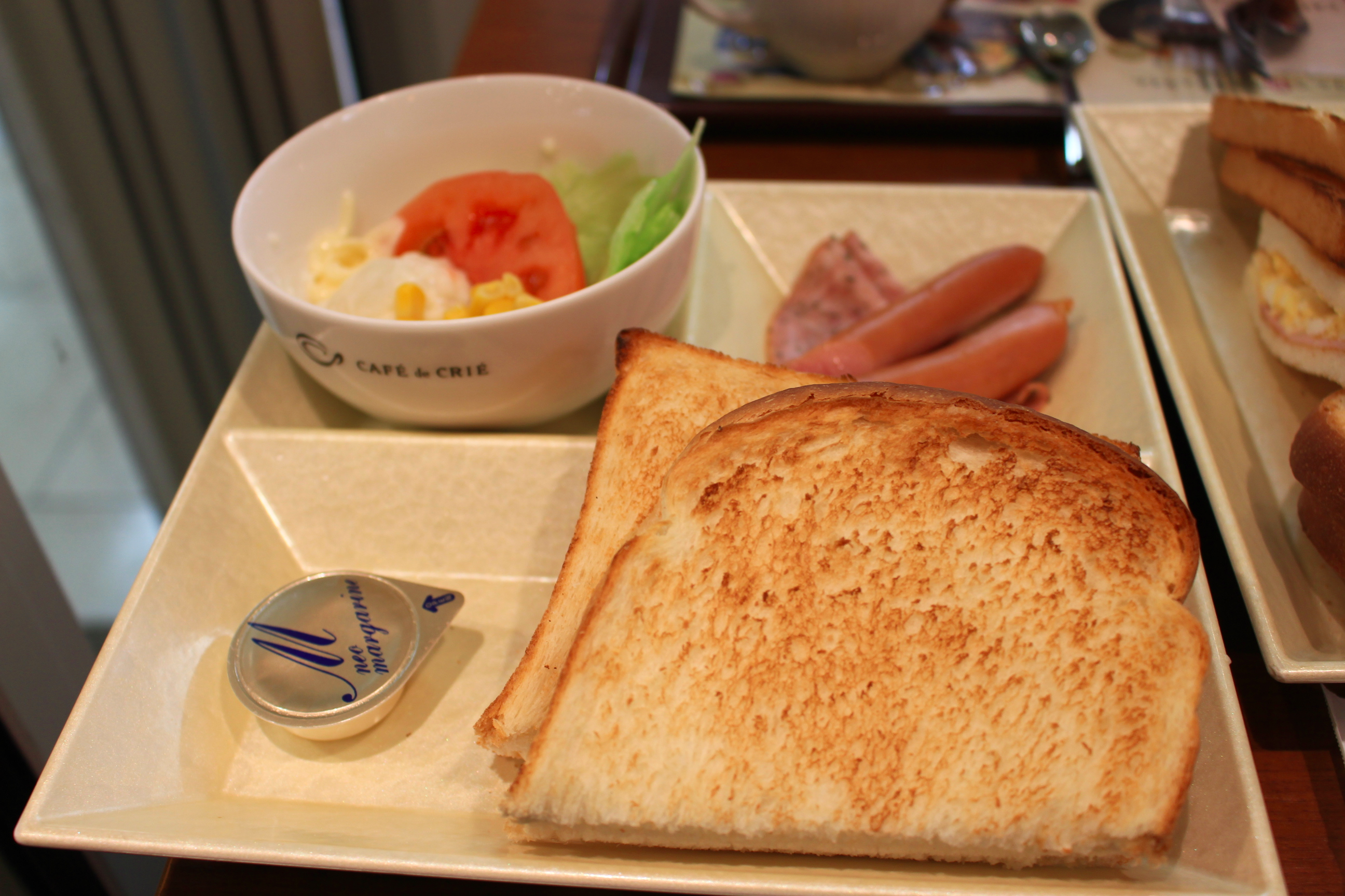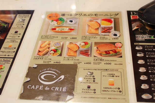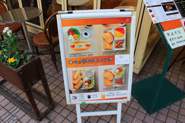 모닝 세트 메뉴는 커피 포함 400~500엔 정도이고, 50엔을 더 내면 커피 대신 주스를 마실 수 있다고 합니다.