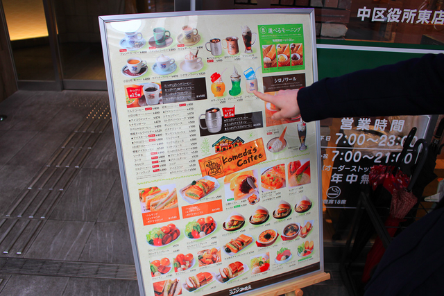나고야 카페 이야기로 돌아가, 먼저 첫번째 사진은 나고야에서 가장 유명한 카페를 말씀드리면 '코메다 커피'라는 카페의 메뉴입니다.