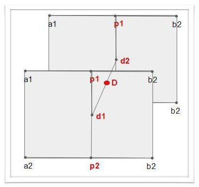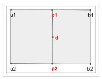 이 방식은 두개의 직선 상의 p1과 p2라는 꼭지점이 구해지면 다시 p1과 p2라는 끝점을 기준으로 다시 d라는 꼭지점을 구할 수 있습니다.