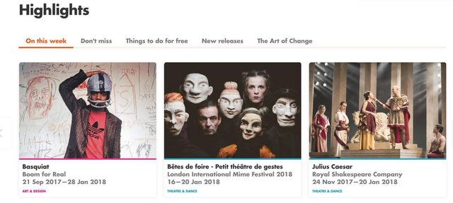 - Highlights: 현재 공연/전시중인 프로그램 중 인기작들 이에요. 제가 좋아하는 바스키아 전시도 있네요! (이외 공연 스케쥴은 홈페이지에서 확인 가능합니다.)