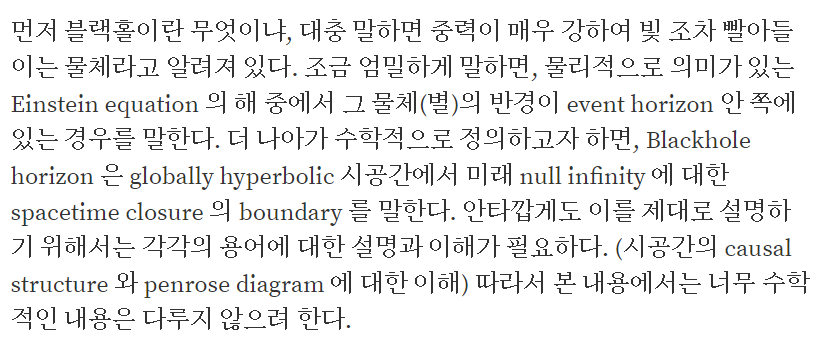 먼말이냐 하면 흠 블랙홀의 정의부터 복습해야되는데... [[과학] 중력파와 블랙홀-1 [이론소개 중심]]