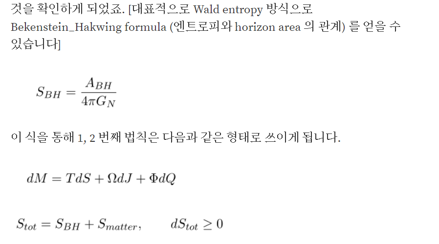 를 의미한다. ] 블랙홀 열역학 제 1법칙으로 인해
