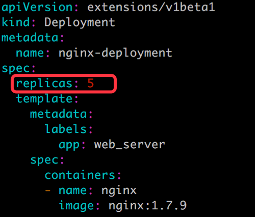 上各跑了一个副本。现在修改 nginx.yml,将副本改成 5 个。