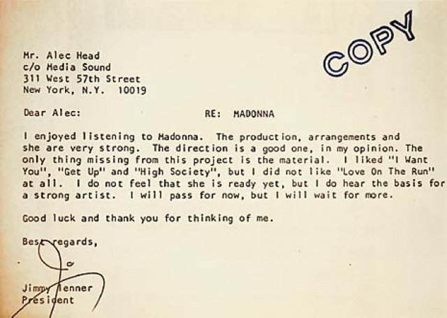 The picture attached above refers to a letter from the director of the studio telling that Madonna is not ready yet, but after the contract was signed more than 10 million copies of the album were sold around the world.