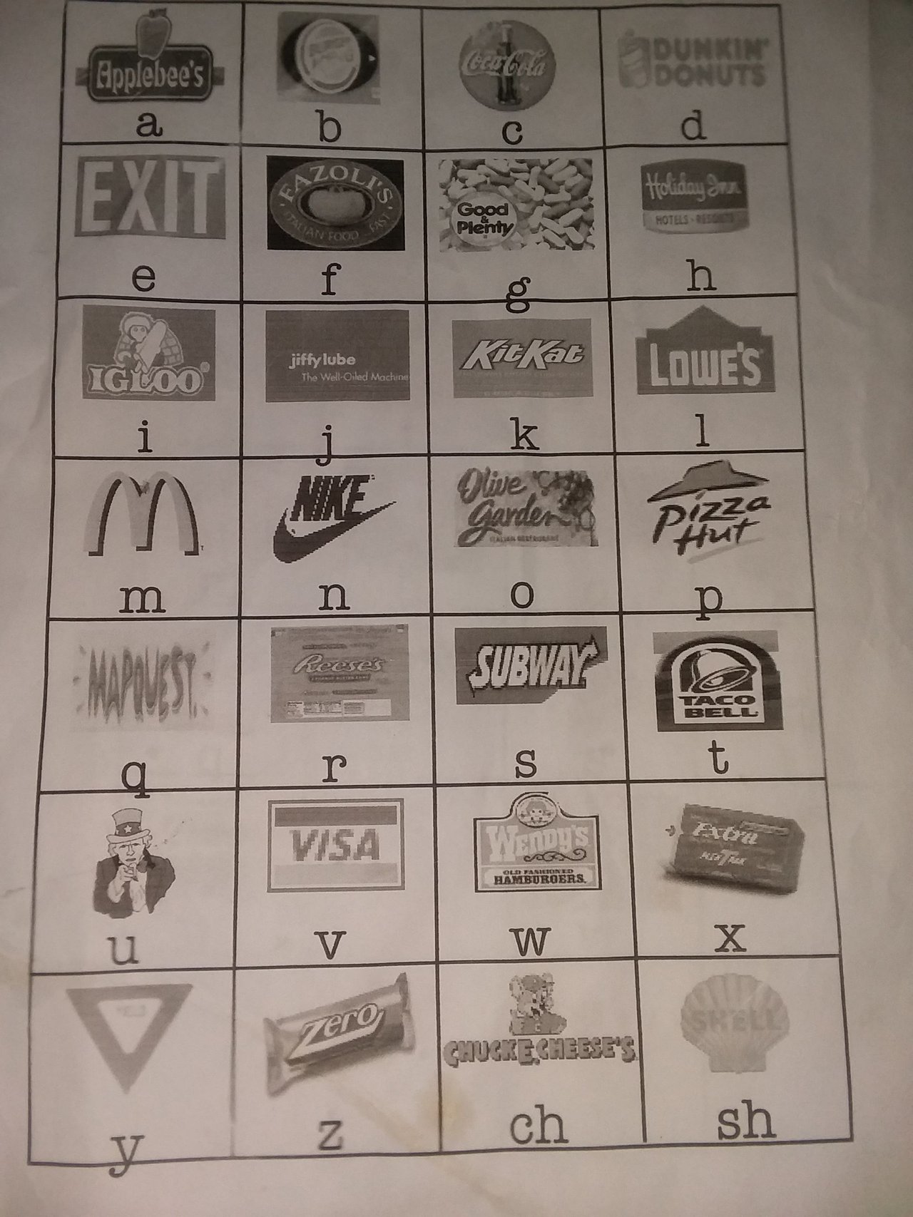 So I pick up my daughter from daycare and she tells me that they have been going over there ABCs. So then we make it home and she hands me the paper with the abc's on it, so as I'm looking the paper over I'm reminded of the ABCs that I had when I was her age and believe me they look nothing like this. Now I'm not one for conspiracy theories but I do believe in Social programming going on all day on TV as well as in the schools. And if this isn't proof enough of the type of things that they are programming in two are young children I don't know what is. Please tell me why a 4 and 5 year old need to learn ABCs such as A is for Apple Bee's B is for Burger King C is for Coca Cola D is for Dunkin Donuts H for Holiday Inn J is for Jiffy Lube Etc. What happened to the days of A is for appleB is for banana C is for carrot D is for dog E is for elephant in the such.