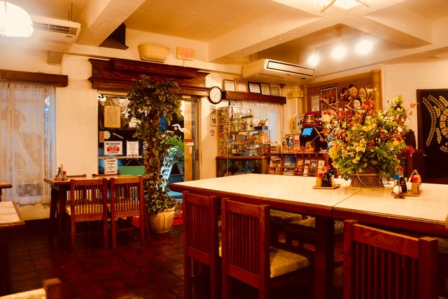 吧台的酒瓶子从大到小摆了得有上百个,客人也大多是说日语的,好容易能看到墙上一幅写着中文的宣传海报。餐厅里的电视循环播放着塞班的游乐设施和旅游线路,甚是热闹。