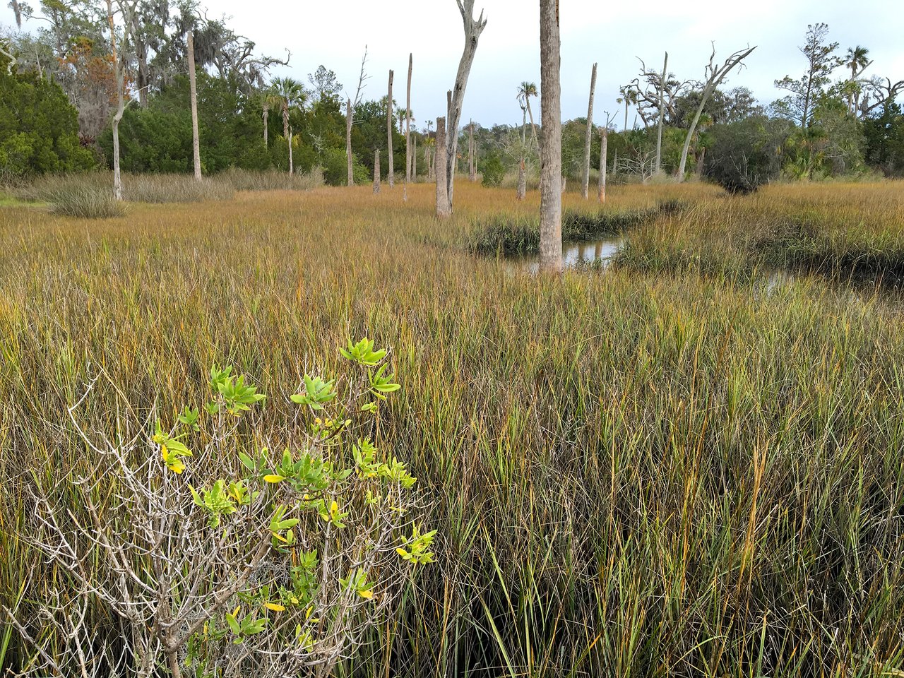 Looking south across the marsh, there are a few houses. I’d hate to be hanging out in their yard during the summer! I’m sure there are mosquitoes and other bugs galore! Not a bad view though, I’m sure.