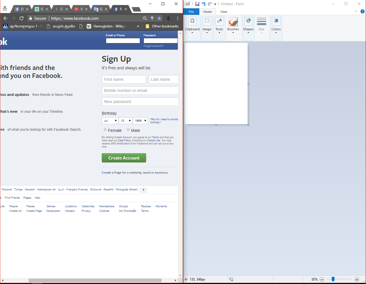 if you want nice and easy split screen meaning 2 different windows at the same time on your screen use Windows + (Left or right) Arrow in case where do you want this window to be. and you get nice organised windows like this.