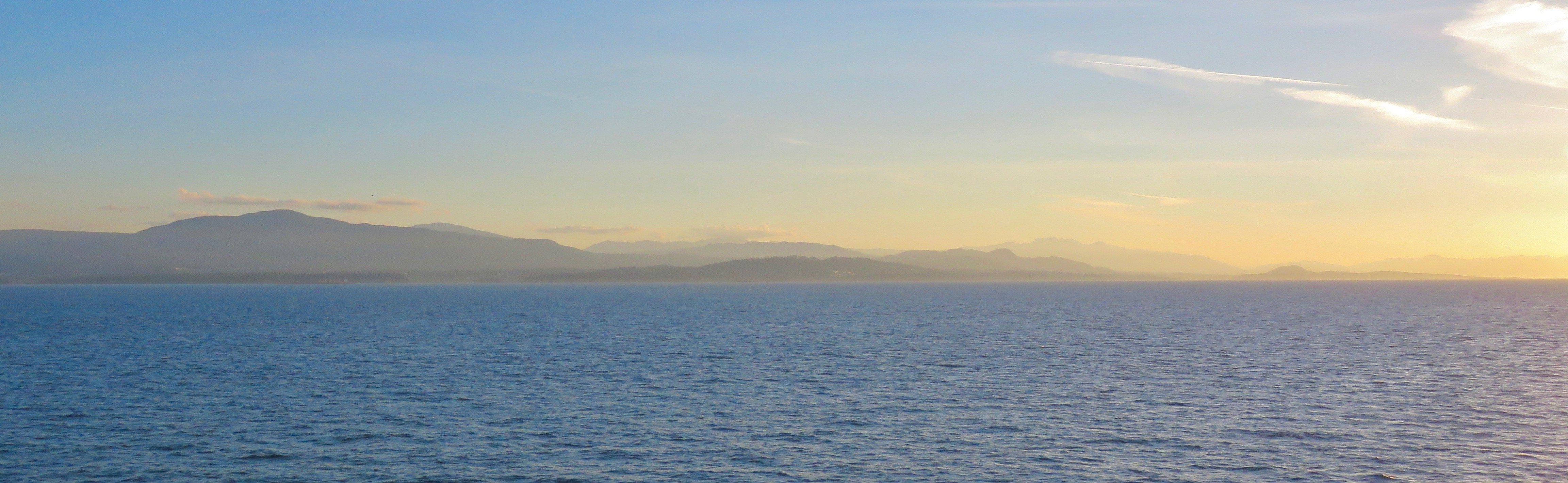 Looking forward, Vancouver Island laid ahead of us only separated by the Straight of Georgia’s slowly shrinking arm. Meanwhile, as if to echo the departure of Haida Gwaii as a way welcoming me back, humpback whales came across our path and attracted dozens of tourists that fled to the front of the vessel, then followed the cetaceans to the port side. A calf followed in the tail of its mother as they swam by a fishing boat running in a parallel course. They gave us a memorable show as the sun unalterable path along its westerly arc made its way down.