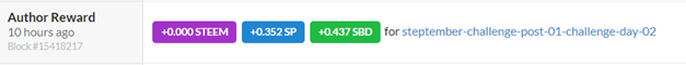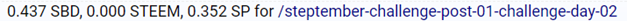 I checked a few sources to make sure that I know the correct amount of SBD. steemvote.com, steemdb.com and steemd.com all gave me the same answer. I will be donating the 0.437 SBD portion of my rewards toward my Steptember Challenge.