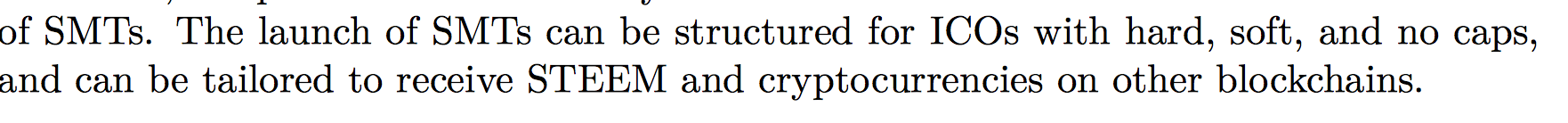 An SMT will be traded through STEEM, so we won't have a bunch of SMTs and STEEM just one of them. We will have STEEM, and then a bunch of SMTs on top of STEEM. Market-wise, this will most likely boost demand for STEEM, as a token.