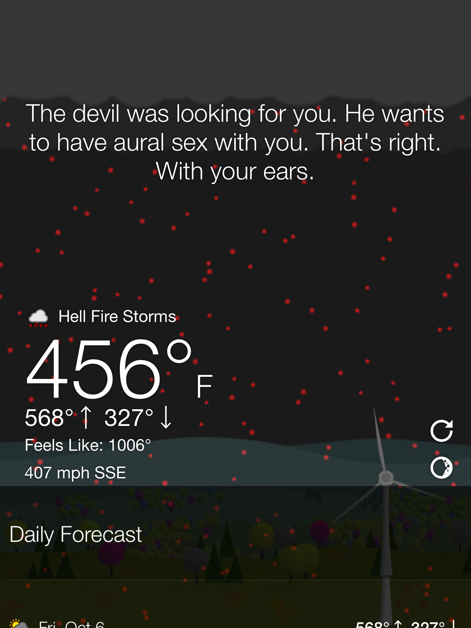 I Use the WTF Weather App on my iPad and iPhone. Always a Comical Way to View the Forecast.