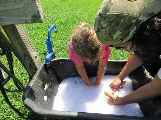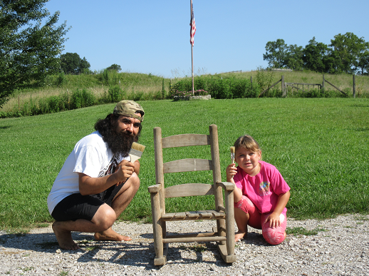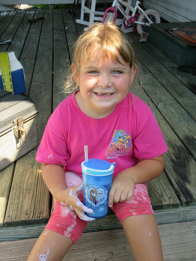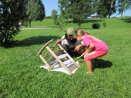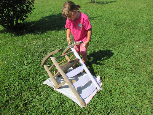 After the well-deserved break, it was time to get back to work! This is about the time she tells me we should put the wet chair on the porch so her brother can sit in it. I am informed of the importance of the color purple for girls. She even starts to give me pointers on how one should paint! The break really helped lift her spirits and she saw the rest of the project through with a smile on her face!