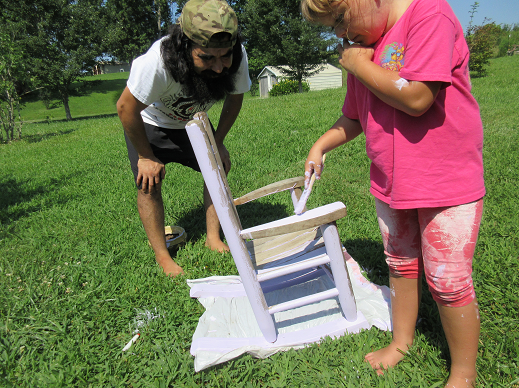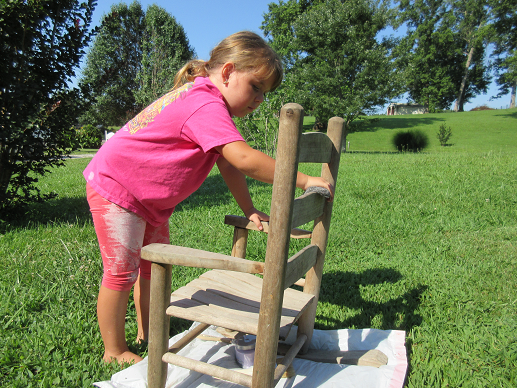 Yesterday, my daughter wanted to paint her rocking chair the color purple.