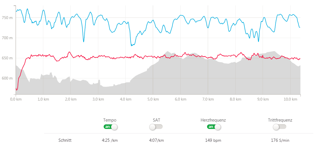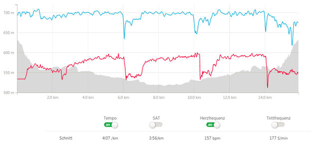 typical interval training can look like this (red line = Heart rate / blue line = Pace):