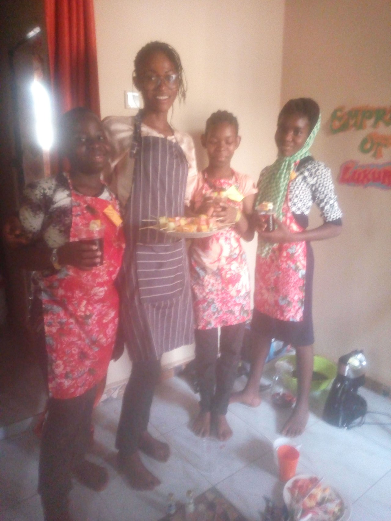 So I decided to train some secondary students today on how to make a rainbow cake, 4 snacks and 3 cocktail drinks for just 1000 Naira. Not 10000 Naira, 1 thousand Naira.