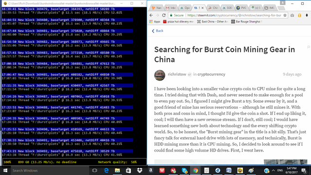 Sometimes, alt coins are like drugs in one respect: the gateway syndrome. One coin is never enough. One miner is never enough. You have to move on to the bigger, nicer, more power coin and miner. Steemit is like that as well. It draws in the causal onlooker thinking, "Interesting! Digital play money!" Only, it isn't play money one quickly finds out. I discovered that once I did two power downs and realized that I easy had enough money to go back to the USA and see my family this summer (I live and work in China). Thank you, Steemit! My guess is a number of newbies get a crash course in Bitcoin because they came to Steemit out of curiosity, first. As for mining, I am currently fighting the itch to buy three new AMD cards and go after some Z Cash to supplement the Steem, SBD, and Ethereum Classic I am already taking in. That brings me to another example. Burst.