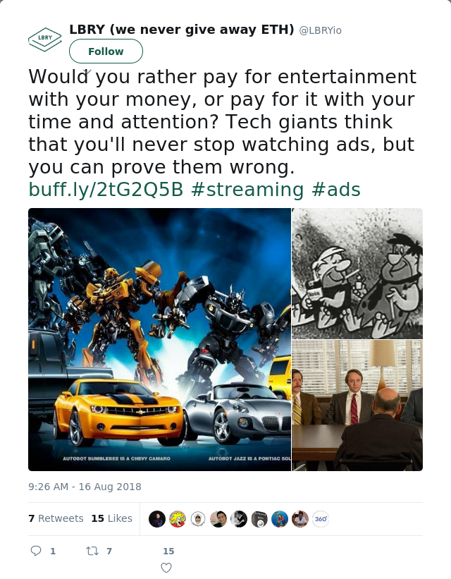 RT @LBRYio: Would you rather pay for entertainment with your money, or pay for it with your time and attention? Tech giants think that you'…