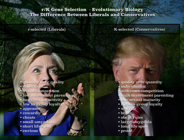 To my eye, it is inherently clear that this r/K divergence is the origin of our political divide. Indeed, while policy proposals from Conservatives are predicated upon the premise that resources are inherently limited, and individuals should have to work and demonstrate merit to acquire them, Liberals advocate on behalf of policy proposals which seem to be predicated upon an assumption that there are always more than sufficient resources to let everyone live lives of equal leisure. To a Liberal, any scarcity must clearly arise due to some individual’s personal greed and evil altering a natural state of perpetual plenty.