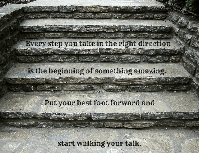 'Every step you take in the right direction is the beginning of something amazing. Put your best foot forward and start walking your talk.'