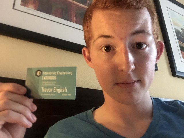 Me with my business card cooped up in a hotel room on travel with the U.S. Navy while writing this (story for another time) Also, because I know you're wondering, I'm 22.