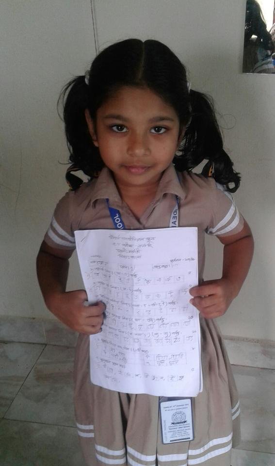 She is my nephew. Her name is sunam. She lives beside my flat with her parents. Few days ago she came to my flat to show her exam paper to her aunty. She got 80% mark.