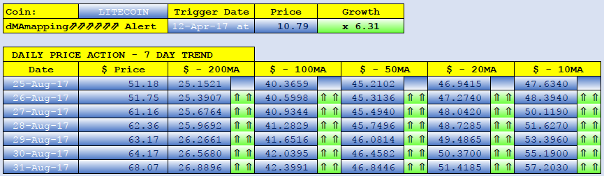 LITECOIN triggered a dMAmapping⇗⇗⇗⇗⇗⇗ BUY Alert Signal on 12-Apr-2017 at $10.79.