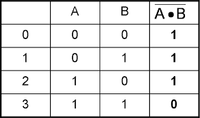 In the truth table we see exactly what I meant. It is the exact inverse of an AND Gate!