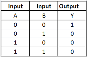 A NOT gate is again made by joining the inputs of an NOR Gate, the same way we did in with an NAND Gate!
