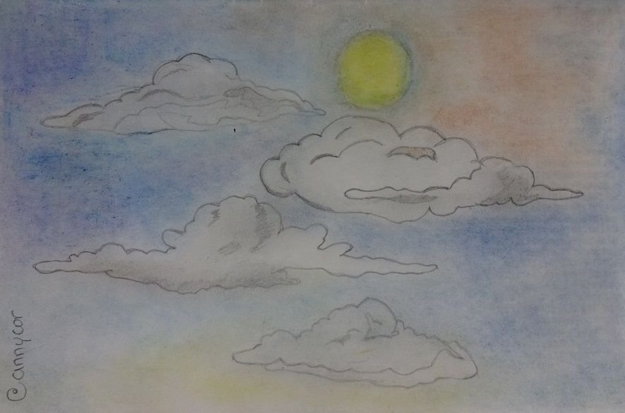 I spent the mornig looking to the sky tryng to find clouds that I'd liked, but this days were sunny, very sunny. So, I decided to make my own clouds, that reminded me childhood, when I spent a lot of time finding shapes and stories on the clouds.