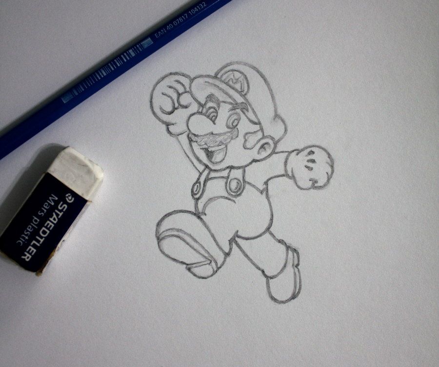 Once I have the basic outlines close enough I erased the guidelines and cleaned up some messy bits. Two steps in and we already have a picture of Mario!