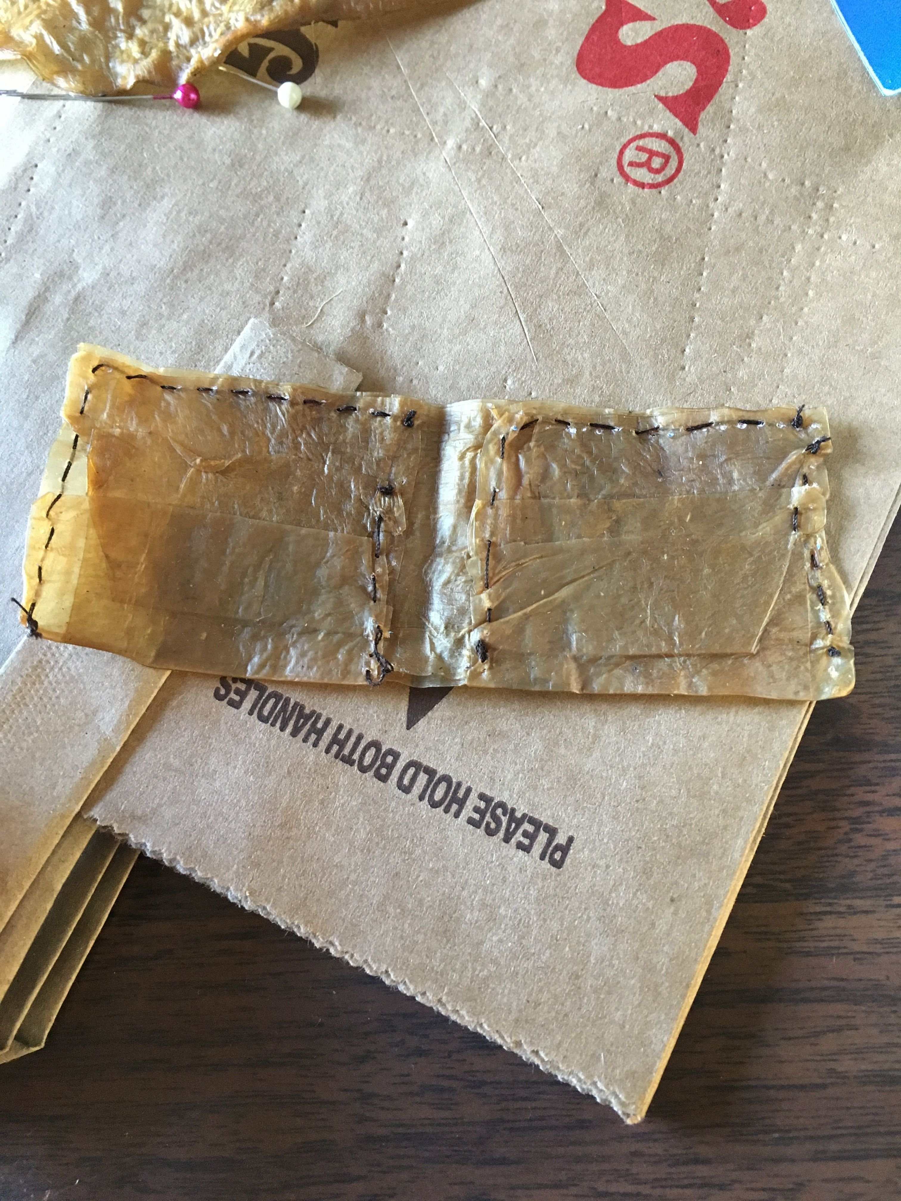 Before I get into the wallet construction, I'll share a link to a modified recipe that makes this possible. I will not walk through the recipe, but I will say you want your raw scoby to be at least a quarter inch thick before taking it out to dry.