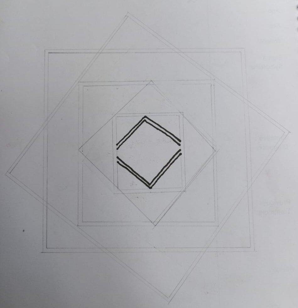 - প্রথমে আমি স্কেল দিয়ে তিনটি আয়তকার বক্স এঁকে নিলাম। তারপর স্কেল দিয়ে মেপে সঠিক ভাবে আরো তিনটি আয়তকার বক্স অ্যাঙ্গেল করে এঁকে নিলাম।