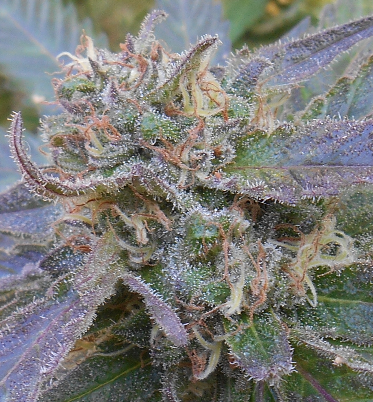 As we move into October the nights are growing colder here in Oregon and the deciduous foliage is responding with the usual beautiful degradation into autumnal reds, yellows and browns. My outdoor beauties are still in full flower; the trichome heads are still clear which is a surefire sign that they have not yet reached peak ripeness. The Blue Widow (Blueberry x White Widow Indica dominant hybrid) is the farthest along, with individual colas already in the 1/2oz to ounce range and quite a few red hairs despite the clear trichomes. The Blue Widow is also starting to display the coveted purple coloration as you will see below.