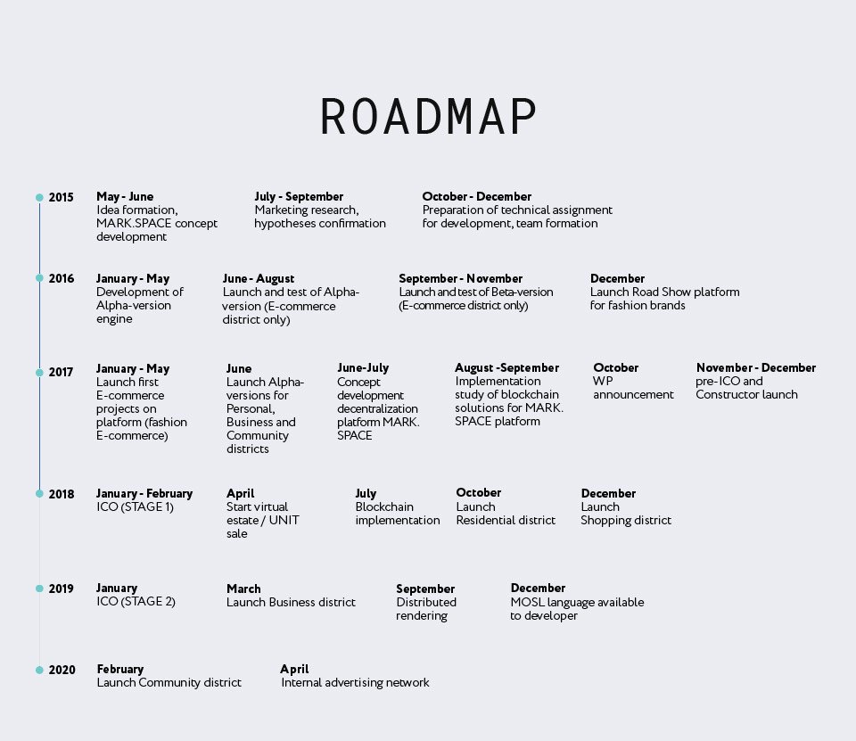 Blockchain is used to guarantee private ownership of the units. The smart contracts will be used to ensure that the clients investments as well as the units are secured. Mark Space has a token MRK token which is its own currency. This token will be used as an internal currency allowing all users to buy or sell the 3D and VR units.