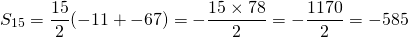 The sum -11 - 15 - 19 - 23 - ... - 67 is equal to -585.