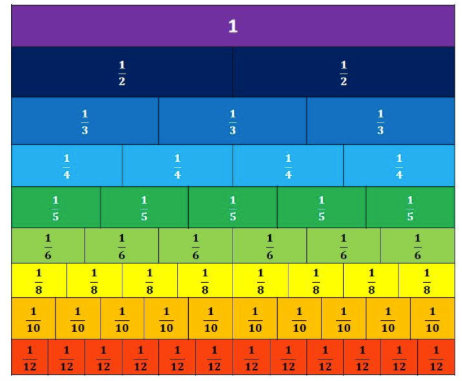 On the fraction wall, learners can see that the bigger the denominator is, the smaller the fraction part will be.