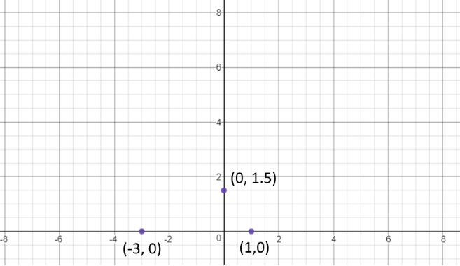 Factoring the numerator gives (x+3)(x-1), so the intercepts are at (-3, 0) and (1, 0). Plot these points on the plane like this: