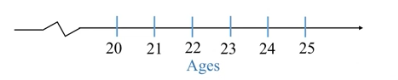 Draw evenly spaced marks to show the ages.