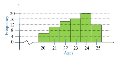 The table below shows the ages of adults in their twenties. Represent this information in a histogram: