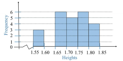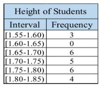 The table below shows the heights in meters of a group of students grouped in intervals of length 0.05.
