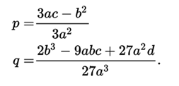 An algebraic equation of third degree or cubic equation with an unknown quantity is one of degree three that can be put in the canonical form: