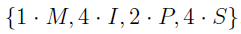 In a multiset, each element is preceded by a so-called repetition number. For instances, consider the following questions: “How many ways can the letters of MISSISSIPPI be arranged?” Its equivalent multiset is expressed as,