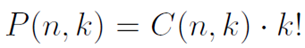In the general case, selecting k things out of set of size n, without repetition and with order counting there will be possibilities, also denoted by