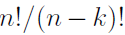 is then the product of k numbers beginning with n and descending down to (n-k+1).