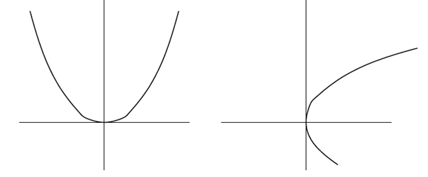 Left: original function, right: inverse function