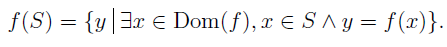 If S is a subset of dom(f) then the image of S under f is denoted f(S) and