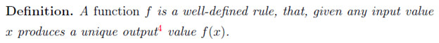 When it comes to using a function, two different people using the same function and similar input most give a matching answer. If they’re different, then at least one of them must wrong. This is a way to ensure that a function is “well-defined”.