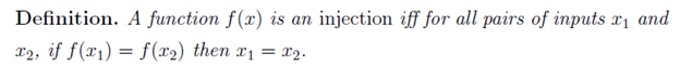 - a function is injective if its preimages are unique