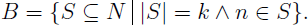 where is a subset of the set N and that k is the size of the subset S, in symbolic form: